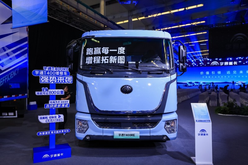 在发布会上,宇通重卡正式推出了行业首款模块化增程重卡,宇通T400RE增程牵引车,标志着新能源重卡技术的又一次突破。该车采用“大电量+小增程”创新技术路线,在整车结构设计上实现了电池全底置布局与增程器模块化布置,有效降低整车重心达30%,传承了纯电平台低能耗、轻量化的优势,整车自重更降至10.4吨。模块化增程系统如同为车辆配备了一个“快速充电宝”,除纯电部分的400度电外,最大可储备600度电续航电能,有效应对冬季电池衰减问题,消除用户对续航里程的焦虑。同时,宇通重卡开发了纯电、增程、强启三种动力模式,灵活适配短途运输、不固定线路及长途干线等多种运营场景,满电满油状态下可实现相当于1000度电的新能源重卡运营效果,一次补能即可行驶更远距离,适配更多线路需求,真正实现无惧续航、运距与季节变化的高效运输体验。