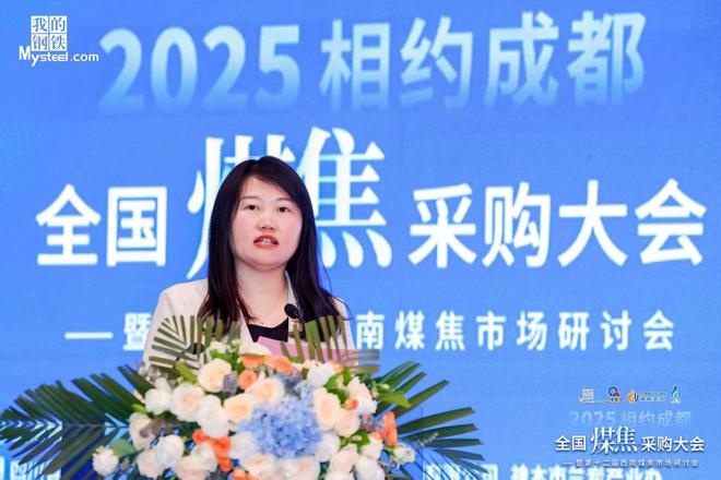 上海钢联电子商务股份有限公司煤焦分析师詹桂清女士带来《2025年煤焦市场分析与展望》的演讲。首先,她为大家回顾了2025年短期煤焦价格走势。在2024年的基础上,2025年煤焦价格重心继续下移,煤焦供需支撑减弱,价格继续承压。国内炼焦煤价格持续走低,海运没价格优势弱化。焦钢目前利润改善,市场价格调整节奏放缓。但需要注意的是煤矿供应持续恢复,库存矛盾继续累积,进口端同样维持高位,一季度累积进口同比增加2%。各环节库存居于高位,市场流通性难有明显改善。当前旺季需求持续回升,原料煤价格有一定韧性,后期淡季来临,需求下滑后价格向下风险显现。短期市场供需两旺,价格维持震荡的可能性更大,按目前铁水走势预期来看,5月份将是钢材产量的峰值,二季度需求有走弱预期,若钢材销售受阻,钢厂利润回撤,就会再次出现减产负反馈的行情,焦煤、焦炭降价风险或进一步加大。